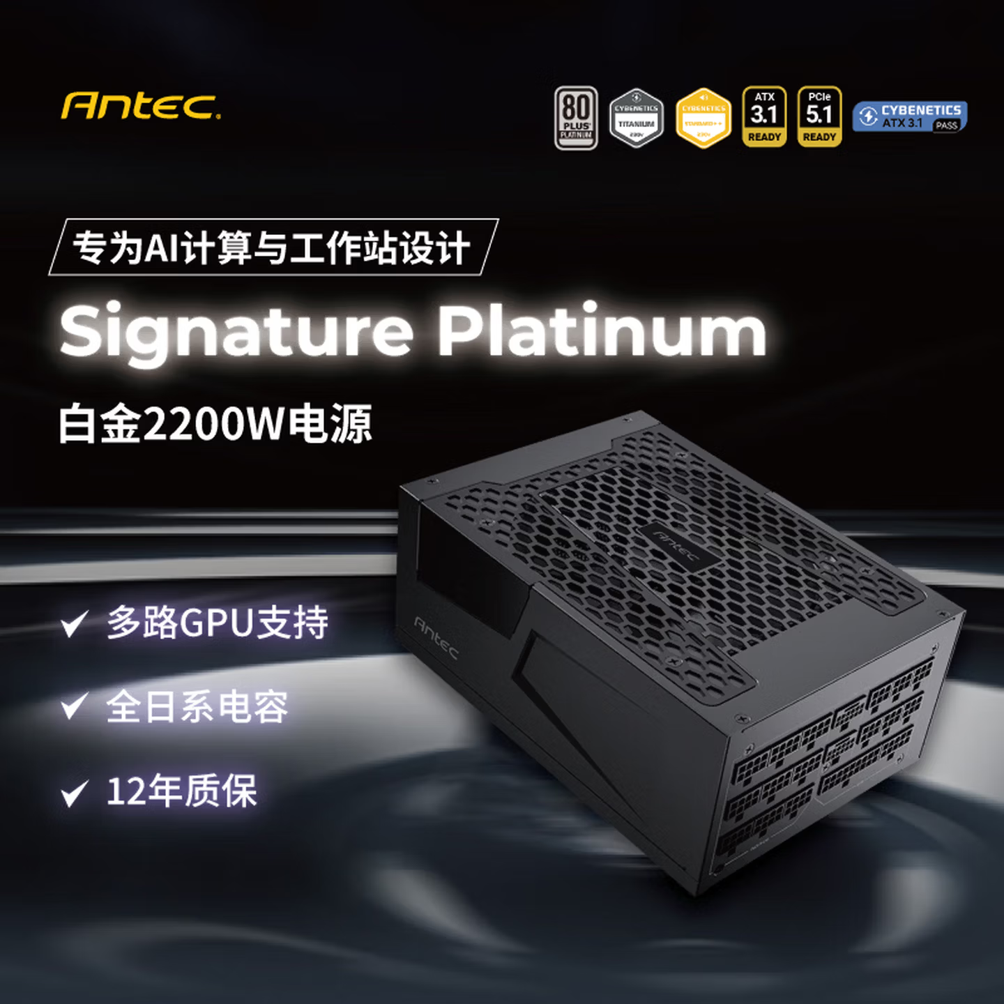 安钛克现已正式推出旗舰级全模组电源Signature Platinum 2200W,定价3799元。这款电源定位AI计算、多路显卡工作站、高性能服务器等顶级硬件需求场景,同时匹配上产品全面的规格升级与严苛认证,跻身当前消费级电源市场的品质巅峰。