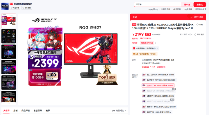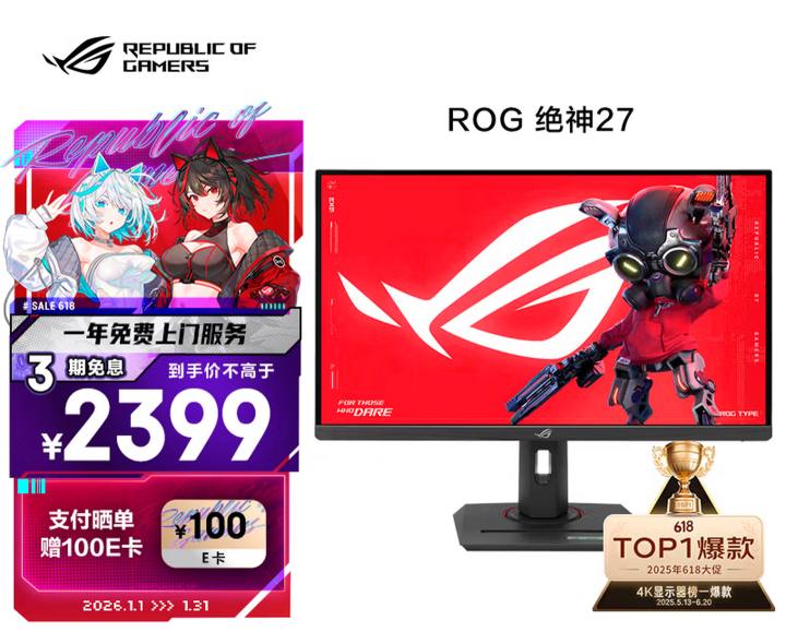 这款显示器作为ROG电竞生态的成员之一,绝神27用2399元的活动价进一步强调ROG品牌的口号:“信仰有价,品质无忧”。华硕依旧采取保守措施,没有选择MiniLED显示屏,追求分区数量,而是采用更成熟的Fast IPS面板。