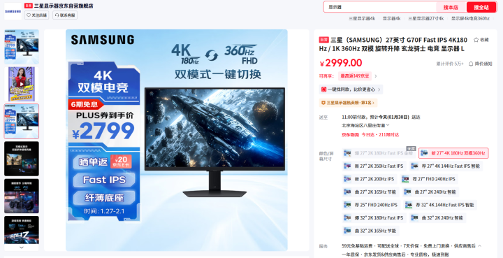 三星玄龙骑士G70F:4K与FHD双高刷的双模标杆
