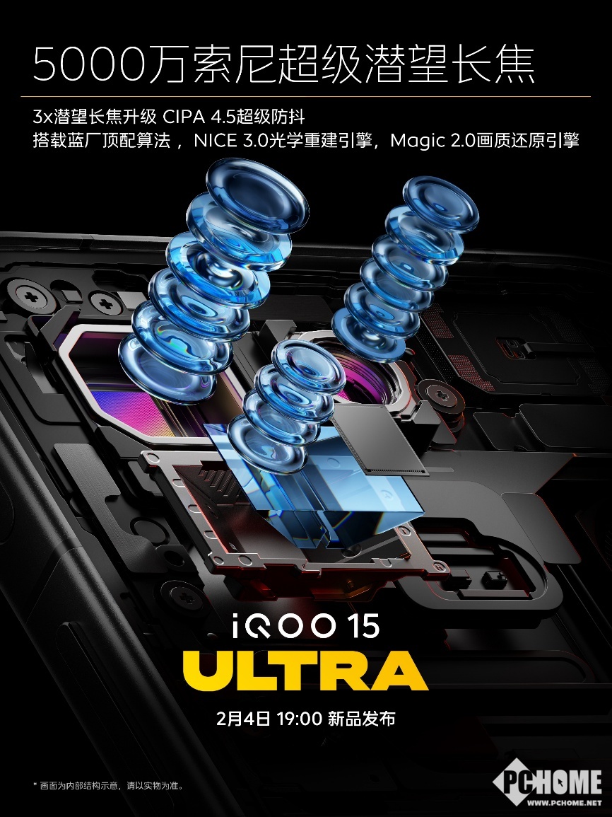 iQOO 15 Ultra搭载2K三星珠峰屏、超感游戏操控、冰穹风冷散热系统、自研电竞芯片Q3、寰宇电竞网络2.0和5000万索尼超级潜望长焦,将为极致玩家带来全面出色的Ultra旗舰体验,该机将在2月4日19:00正式登场。