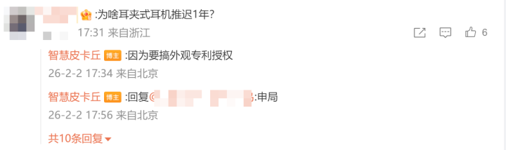 @智慧皮卡丘在微博评论区表示小米耳夹耳机在今年推出是因为在进行外观专利授权;智能手表在续航方面有提升,将在下半年推出。