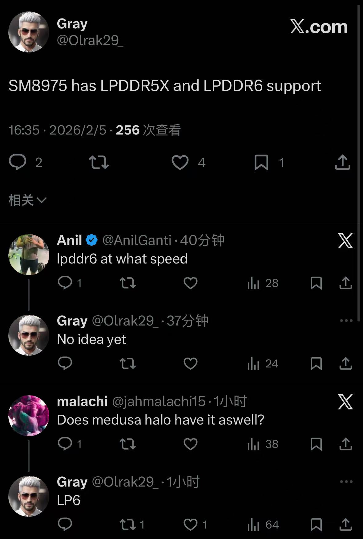 今日,外网博主@Gray(@Olrak29_)曝光了AMD全新架构的最新细节,代号为Medusa Halo的这款架构将搭载LPDDR6内存控制器,成为首批支持该内存标准的x86处理器行列,有望带来内存性能的跨越式提升。