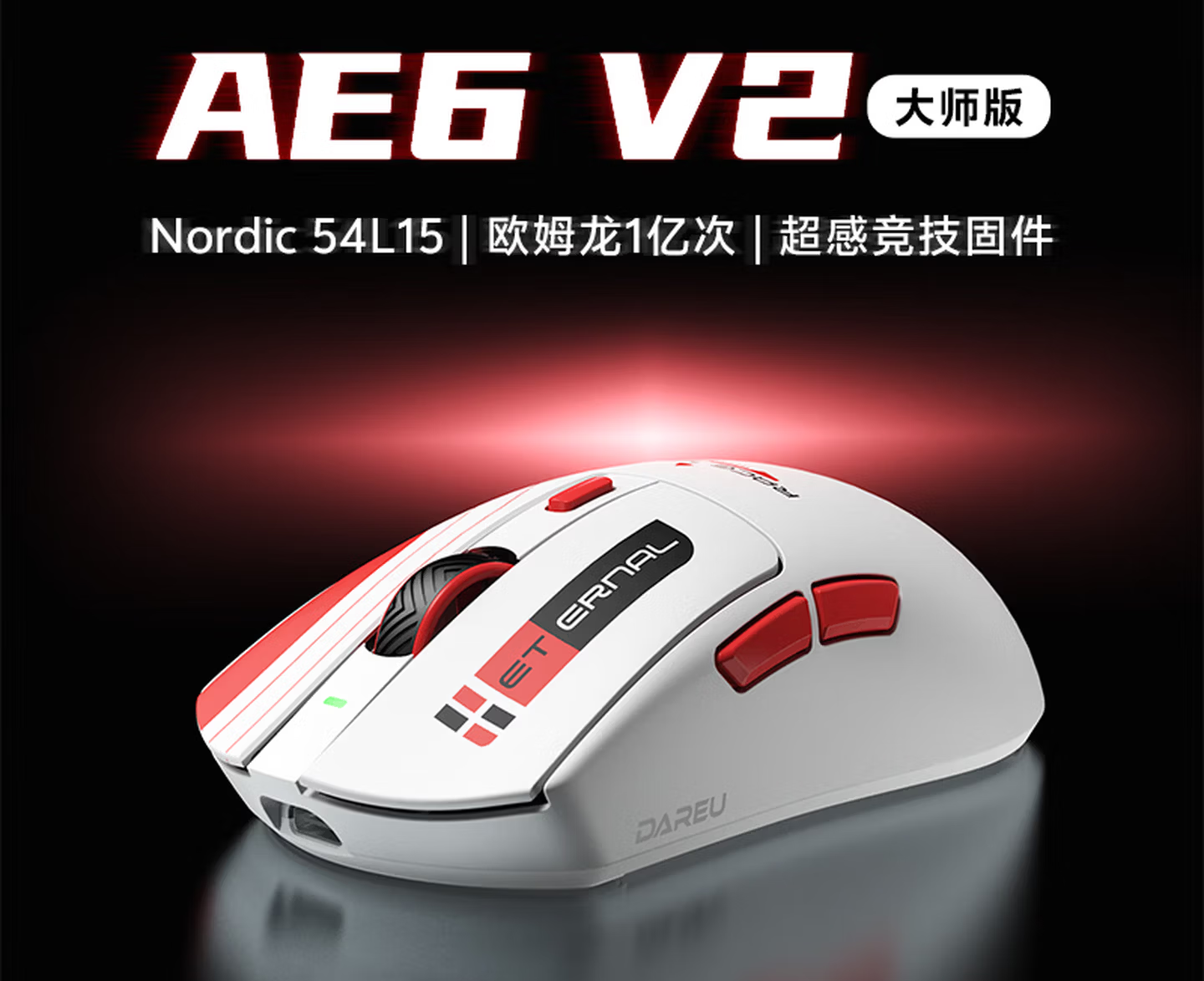 达尔优今日推出无线鼠标旗舰新品AE6 V2系列,全系升级Nordic 54系列旗舰主控芯片与欧姆龙1亿次寿命光微动,支持原生双8K采样率,推出三档版本,覆盖多种需求用户,兼顾性能与性价比。