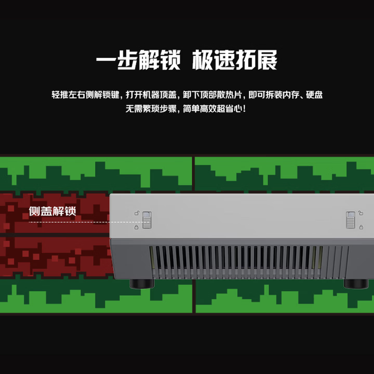 存储扩展性出色,支持免工具拆装,配备双DDR5-5600 SODIMM内存插槽和双M.2 2280 PCIe 4.0×4固态硬盘位,方便用户自由升级。
