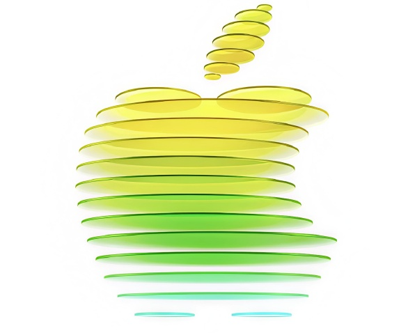 这次活动的邀请函,内容为一个彩色切片的透明苹果logo,颜色有黄绿蓝三色渐变,似乎预示着有多款新品将要发布。