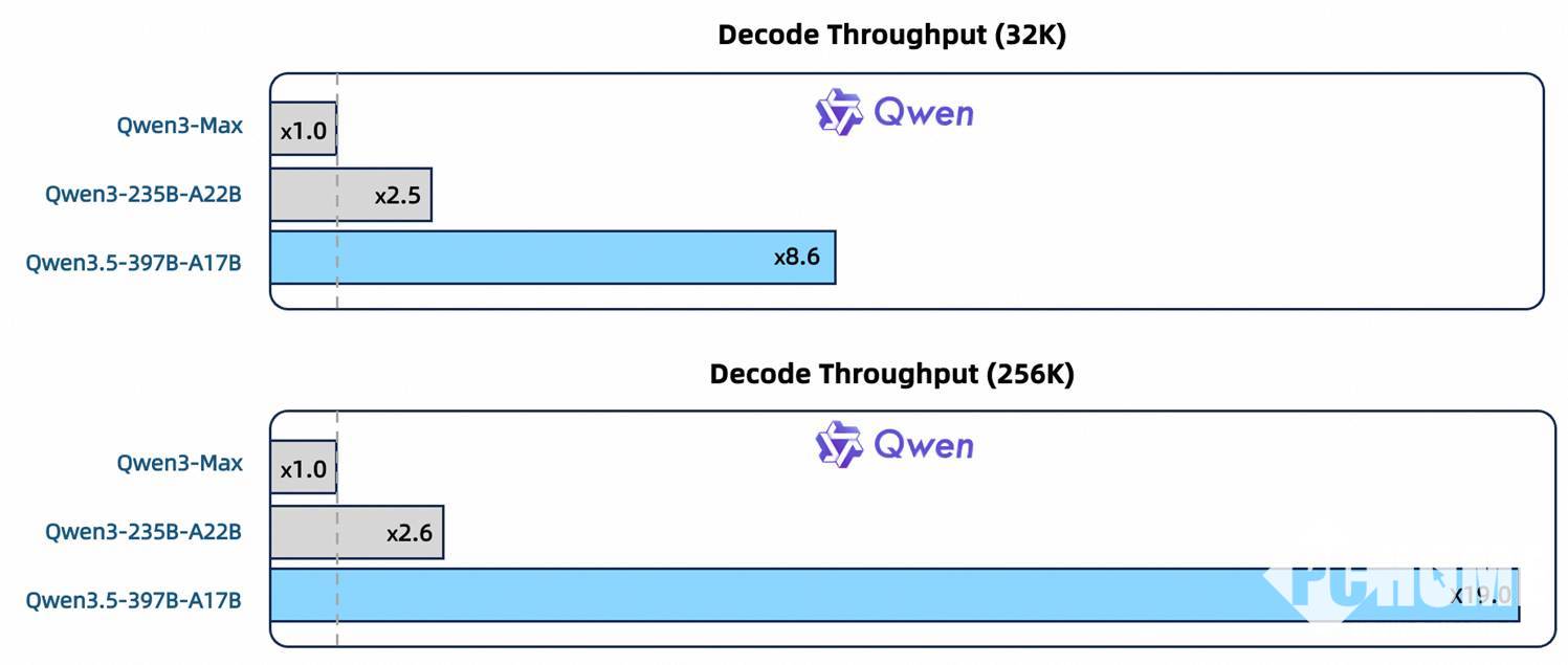 图说:千问3.5推理效率大幅提升,最大吞吐量提升至19倍