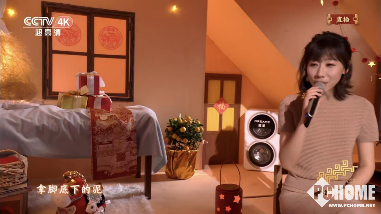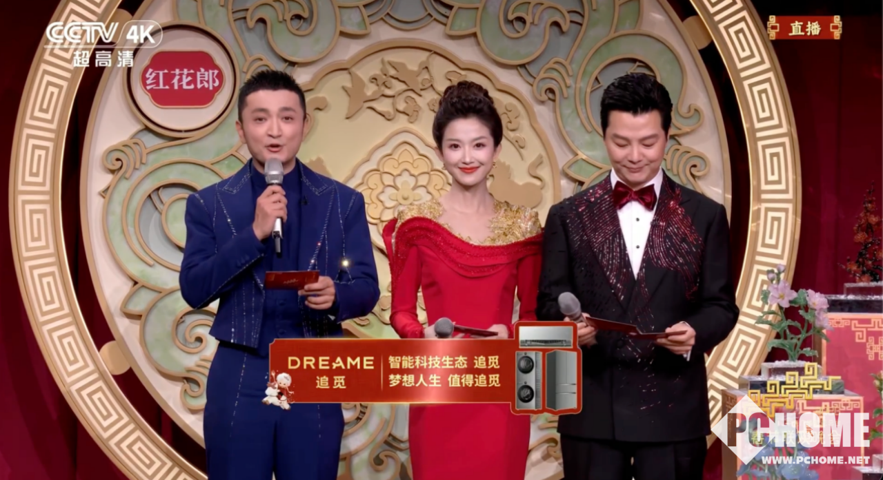 (央视春晚舞台,任素汐与追觅双黄蛋同框)
