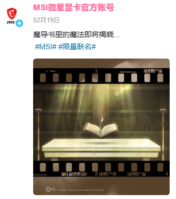 2026年2月19日,微星在B站桌媒体平台的官方账号上同步发布跨界联动预告,以“魔导书里的魔法即将揭晓...”为文案,搭配#限量联名#的话题标签。从官方发布的宣传图片中可以小字看到,本次微星跨界合作的IP为当下正是播出第二季的动漫《葬送的芙莉莲》。经常看动漫的人都知道,芙丽莲属于当下近几年中少有的大热门作品。这也是微星继多款经典动漫联名后,又一次踏入二次元群体的营销布局。