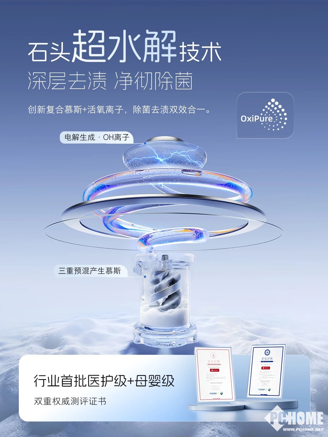 迷你洗衣机的核心挑战在于,如何在有限的水量与空间内,实现媲美甚至超越大型洗衣机的洁净与健康效果。M1S Ultra的破局之道,在于其搭载的行业领先的超水解洁净系统。
