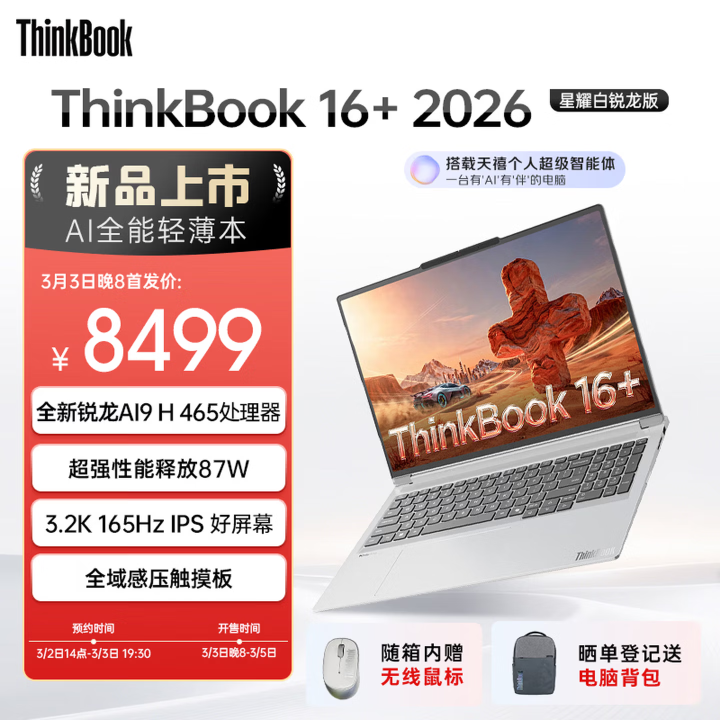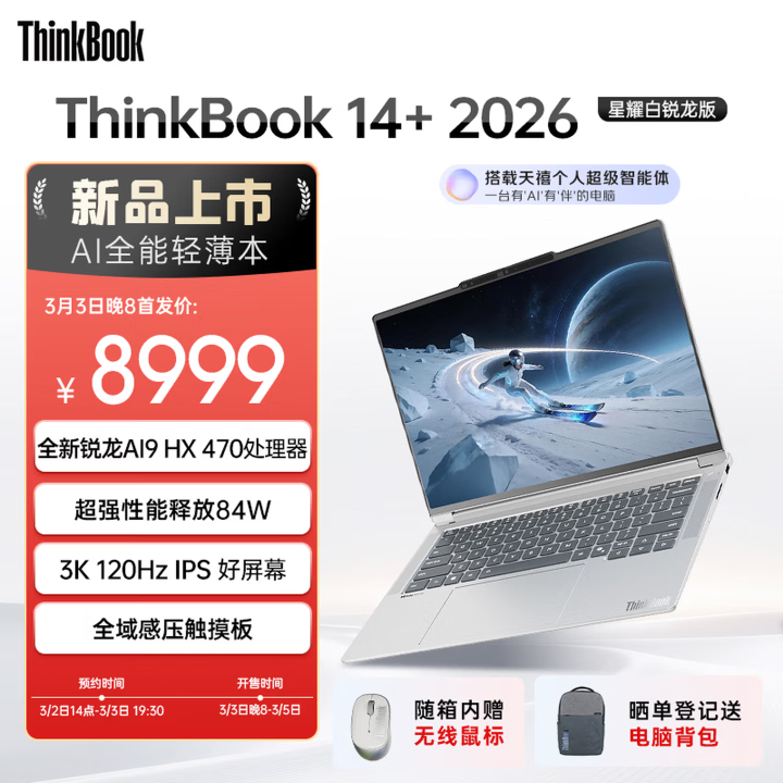PChome3月3日消息,联想ThinkBook 14+/16+ 2026锐龙版现已正式开启顶配机型预售,14英寸与16英寸版本同配置售价统一,凭借强悍性能、硬核扩展性与全面的AI能力,成为高端轻薄本市场的重磅新品。