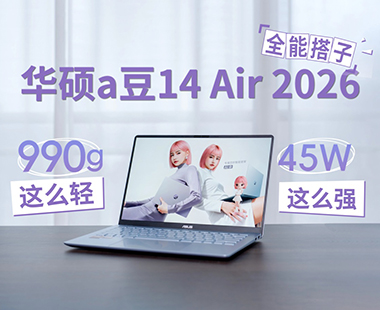 在仅有990克的机身内,竟然做到了45瓦的性能释放,华硕a豆14 Air 2026是如何做到?快来点击视频看看这台“颜值高,性能强,续航长,屏幕亮”的AI轻薄本是如何成为我一天灵感搭子吧!