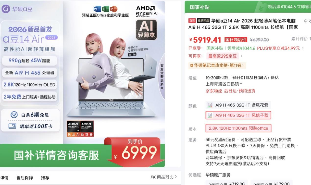 新一年的职场征程已然开启,趁开工季焕新之际,为自己购入一台华硕a豆14 Air 2026款,告别过去的卡顿与沉重,高能满格一路跃升。部分地区可享国补优惠,性价比拉满。更配备a豆无忧服务计划,包括2年硬件上门服务、2年无限远程协助、2年好屏无忧换新,以及2年整机保修服务,专家随叫随到,使用全程安心无忧。上#京东超品日 搜索#华硕a豆14 Air 2026 即刻入手开启全年高效办公新状态!