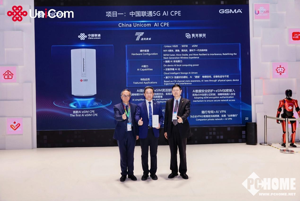 PChome 3月3日消息,在世界移动通信大会(MWC 2026)期间,中国联通与全球移动通信系统协会(GSMA)联合发布面向全球的“‘AI+eSIM’云智终端合作联通方案”。随后,中国联通携手产业链伙伴通则康威、紫光展锐,正式启动首个合作项目——云智终端5G AI CPE项目。这标志着“‘AI+eSIM’云智终端合作联通方案”从战略规划进入落地实施阶段,为AI与eSIM技术的融合应用提供了可推广的合作范本。