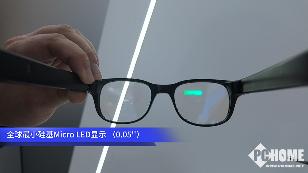 针对AR设备,TCL华星带来全球最小硅基Micro LED显示屏,在0.05英寸面积内实现256×86分辨率,像素密度(PPI)高达5080,像素间距仅5微米,画面极致细腻。屏幕为单色绿色,亮度超400万nit,各类环境下清晰可见,功耗低于10毫瓦,显著延长AR设备续航。