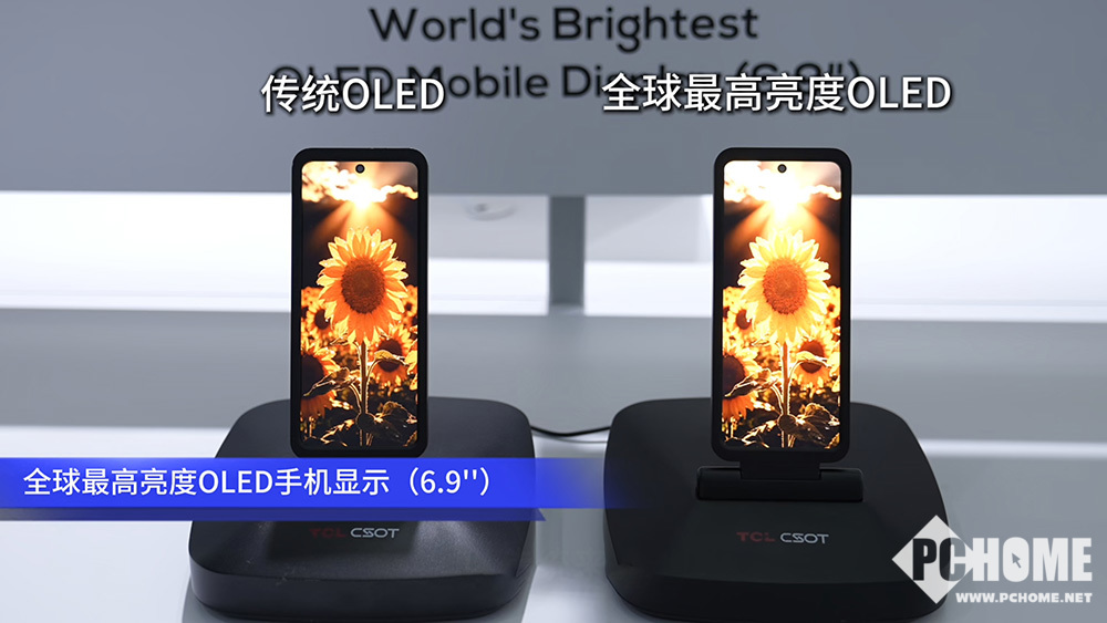 在高画质展区,两款首发屏幕尤为亮眼,面向手机 6.9英寸OLED屏幕,通过PLP 4.0与Tandem技术叠加,大幅提升透光率与发光效率,峰值亮度达到15000nit,创下手机屏幕亮度新纪录,高亮度下依旧色彩准确、不偏色。