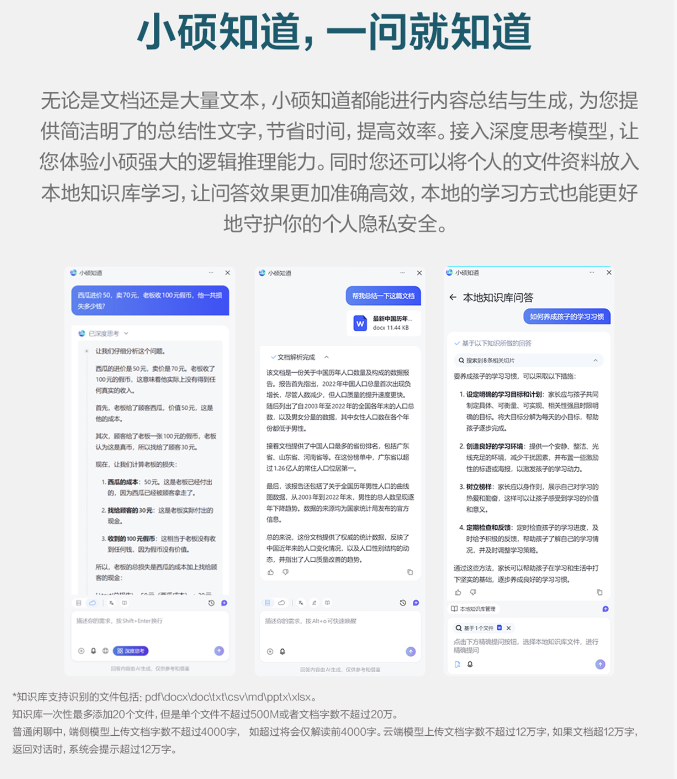 华硕灵耀14双屏2026不仅具备出色的AI算力,还配备了丰富的AI工具。内置了“小硕知道”AI智能助手,可实现智慧问答、文档总结、AI识图、AI翻译、AI搜索等多种功能,如果想要翻译海外文档,只要上传原文后输入翻译需求,AI会在几秒内完成文档的翻译工作,大幅度提升工作效率。并且它基于端云一体的AI大模型,即便在断网的状态下也能使用,对于经常出差或者在网络环境不佳的环境下极实用。
