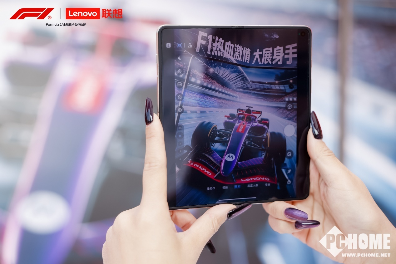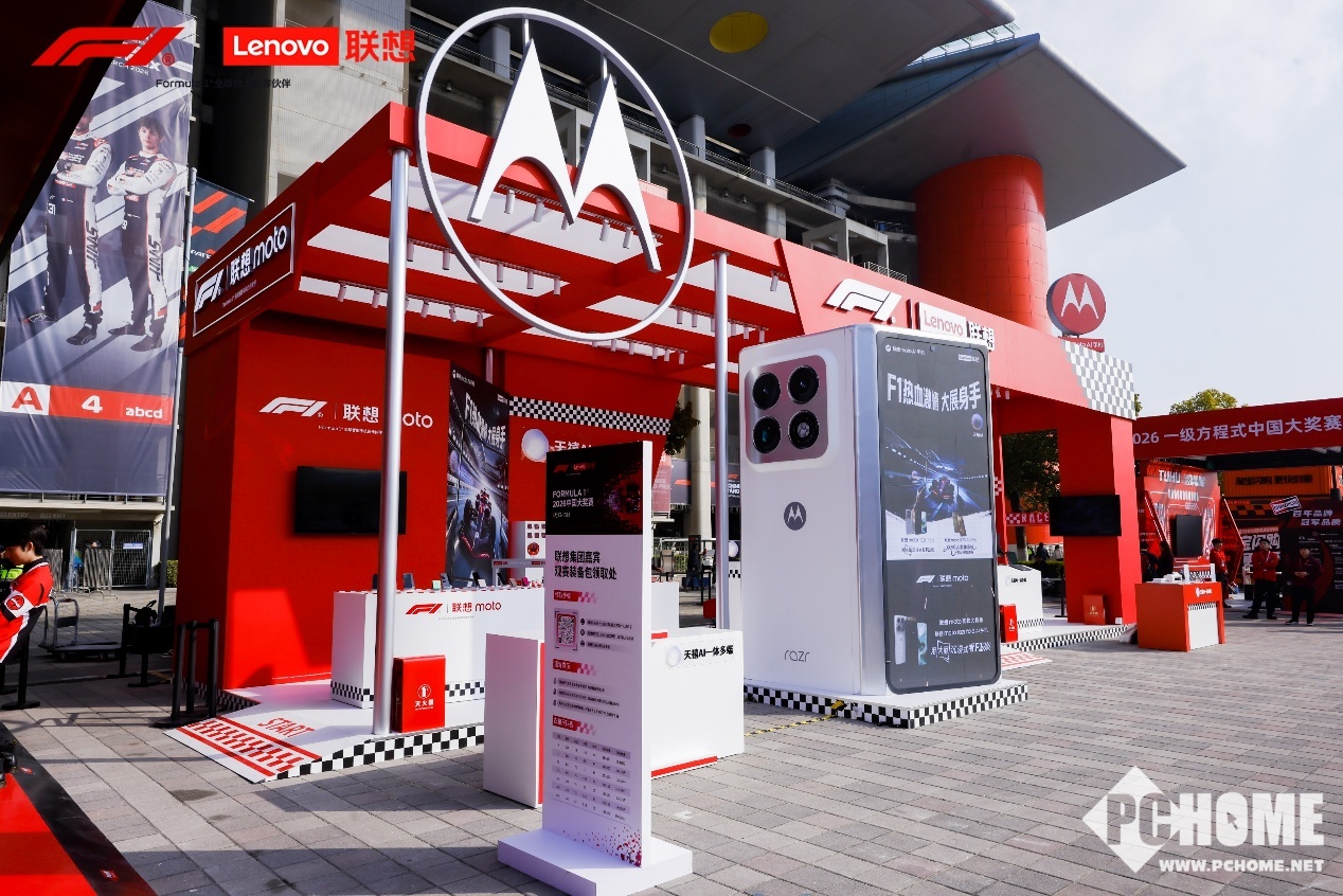 PChome 3月13日消息,2026 F1中国大奖赛于上海国际赛车场正式拉开帷幕,联想作为F1全球合作伙伴及全球技术合作伙伴,携旗下一众产品亮相展台区。其中,全新AI大折叠手机联想moto razr fold折叠屏AI手机赫然在列,这也是该新品首次在国内公开展出。