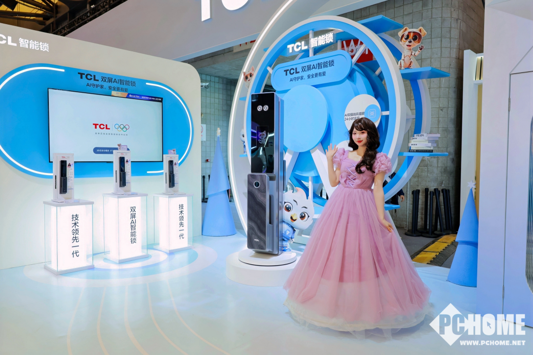屏显技术的应用从眼前延伸至家的入口,在智能安防领域,TCL实业展示的首创双屏AI智能锁TCL K11D Pro,搭载业内首个4英寸超大触控外屏,支持语音指令,一句“录入人脸”就能完成生物权限设置,还内置AI智能管家功能,回家有萌宠动画迎接,节假日自动推送主题祝福。其搭载的AI双摄哨兵猫眼实现无死角监控,上摄看人,有陌生人逗留立即抓拍预警;下摄看地,快递送达时自动提示。此外,TCL实业同步推出C5摄像头与S60安心柜。前者支持AI侦测,实现无死角高清监控;后者具备三层收纳、双重解锁能力,共同构建全场景智能安防。TCL实业以有温度的科技,构建家的安心守护。