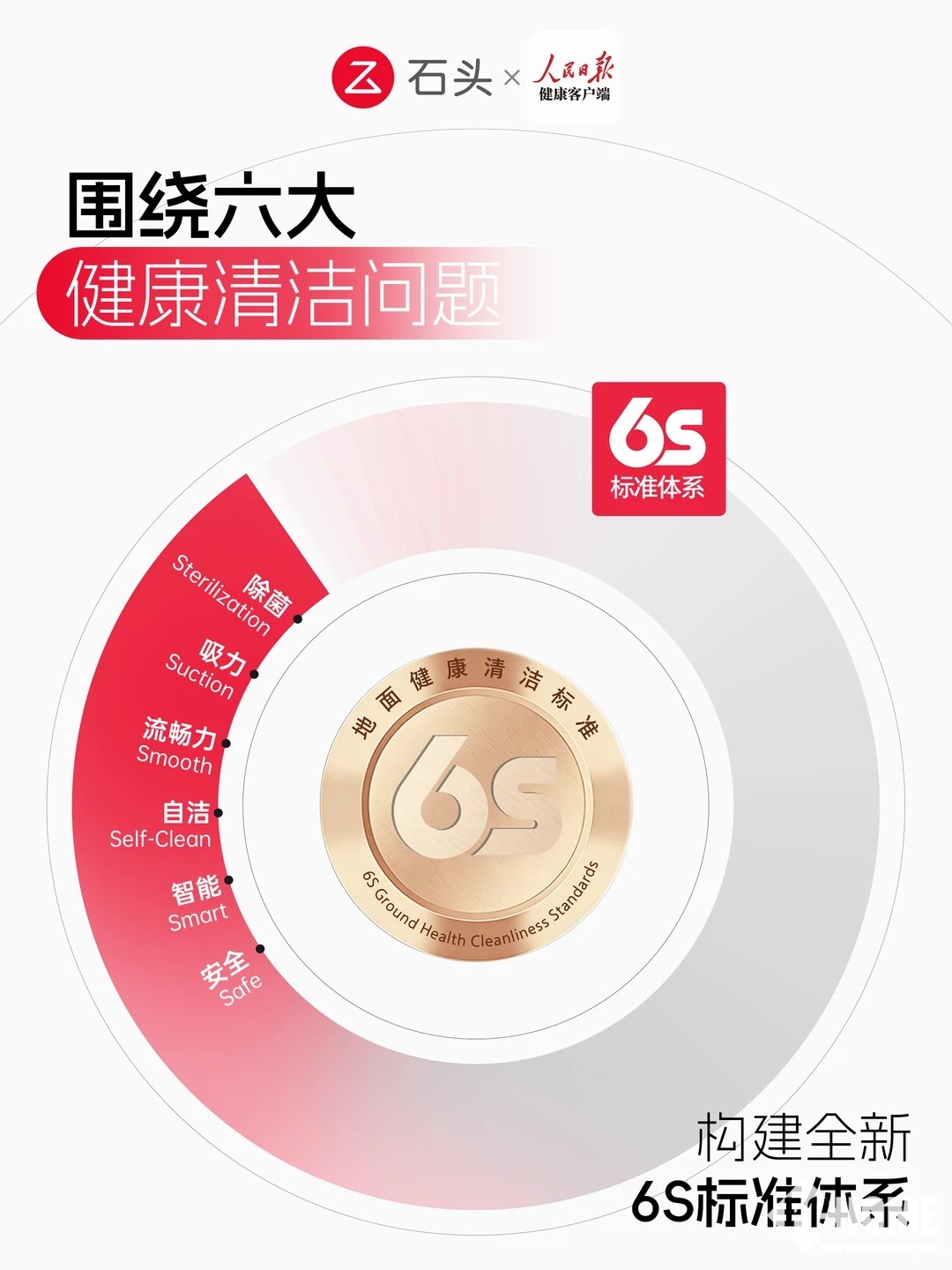 值得注意的是,在AWE2026期间,石头联合人民日报健康客户端发布了《家庭地面清洁标准白皮书》。定义了家庭地面清洁安全标准的这六个核心维度。还给家庭清洁划分了基础、健康、深度三个等级,让 “健康清洁” 第一次有了可量化的标准。而A30 Pro Steam 2.0洗地机,就是完全贴合白皮书标准的“金标”产品。