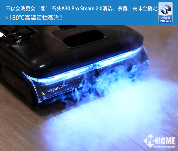 石头全新推出的A30 Pro Steam的迭代款——蒸汽洗地机专家A30 Pro Steam 2.0,专门针对这些升级的“挑战”,带来了180℃活性蒸汽、超能蒸汽模式、90℃热水洗地,不管是地面上看得见的油污、顽固污渍,还是看不见的细菌、螨虫、过敏原,都能高效清除。