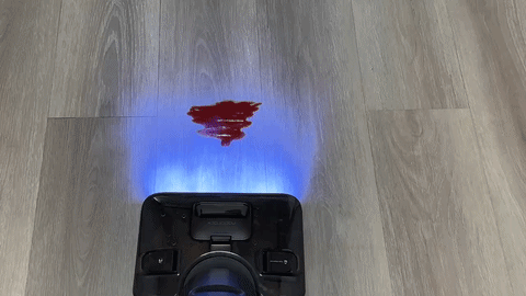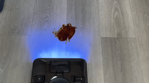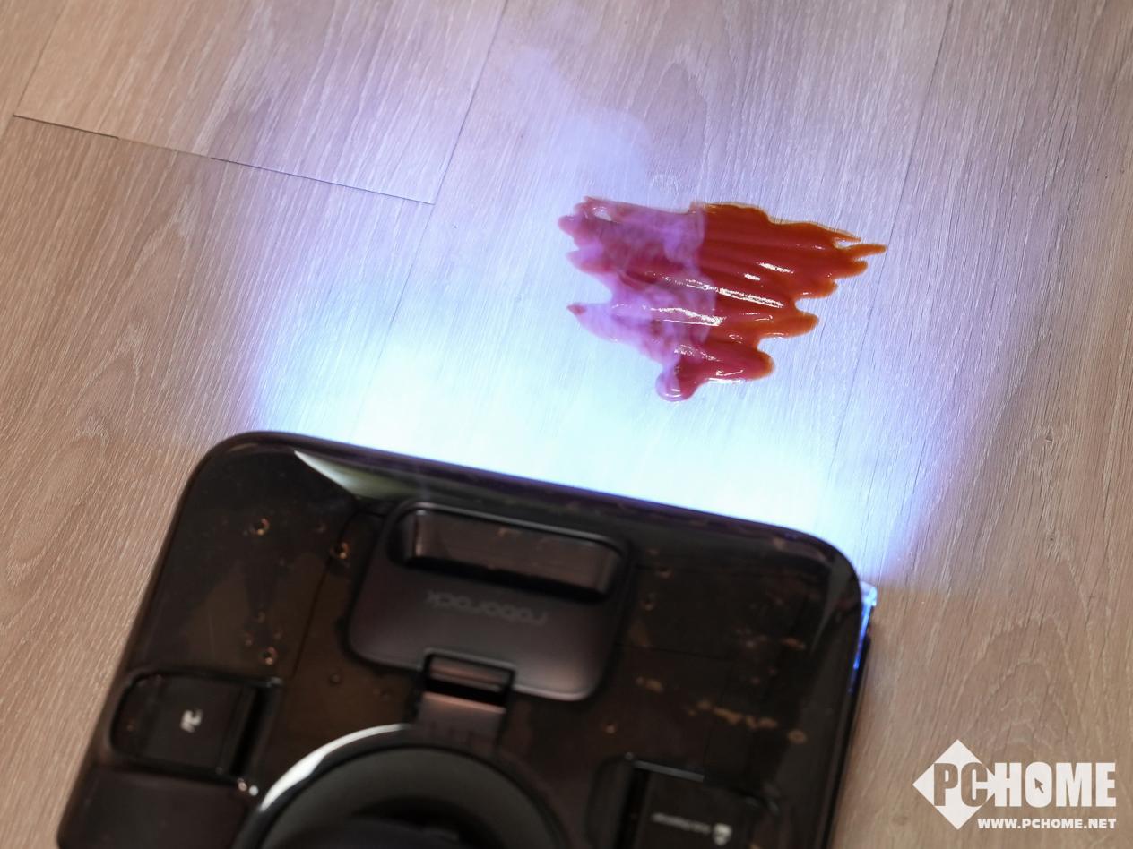 我们提前在地板放置蕃茄酱和蚝油,等待基本凝固后,开启石头A30 Pro Steam 2.0的超能蒸汽模式,能看到溶解去除污渍的效率很高,而且擦除的非常干净。