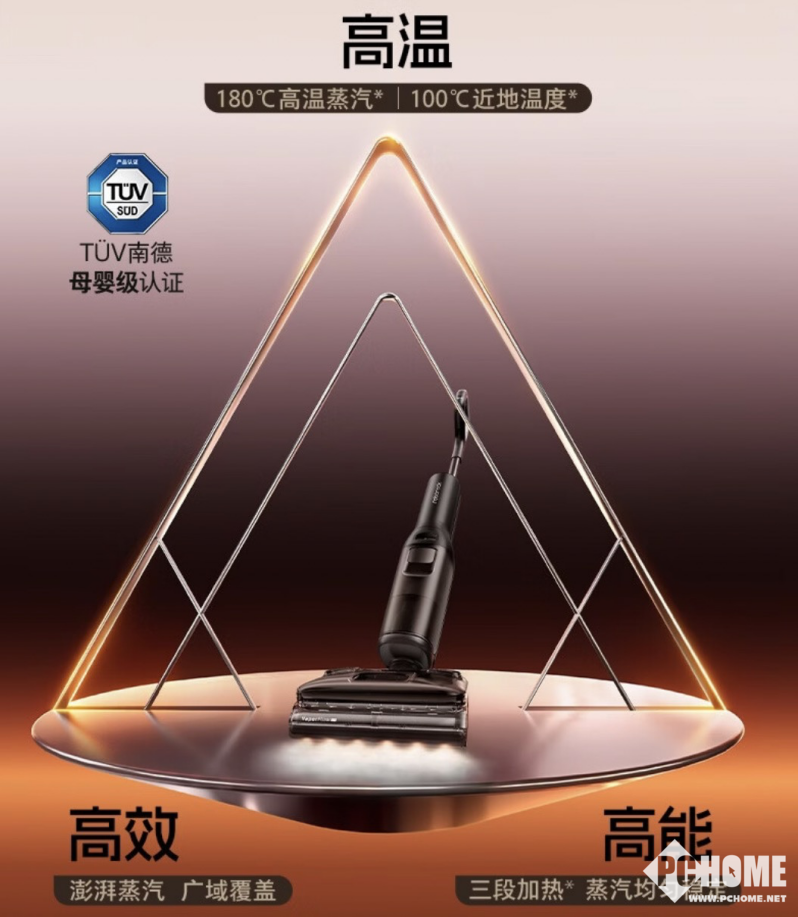 180℃活性蒸汽近地温度能达到100℃,瓦解厨房的重油污、渗透到地板缝隙的酱料、黏在餐厅地面的米饭粒、猫猫狗狗的尿液能更高效的完成。我们在地板倒撒咖啡、酱油后,打开高温蒸汽模式后,蒸汽加热的速度很迅速,面对地板的污渍,推拉一次后地面就十分干净了。并且在清洁完成后,基本闻不到什么异味,空气很清新。