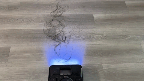 放置在地板的大约30cm长的头发、宠物毛发在高效吸除后,滚刷没有出现毛发缠绕的情况,能看到都被吸到了污水桶内。日常使用中,无论是长发的朋友,还是养宠的朋友,都不用担心滚刷缠绕毛发导致罢工。
