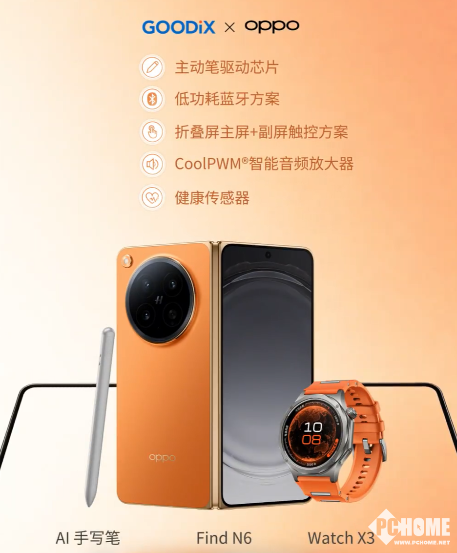 PChome了解到,此次OPPO Find N6与OPPO Watch X3的发布,不仅展现了OPPO在折叠屏与智能穿戴领域的创新实力,也凸显汇顶科技在多技术领域的深度布局。从手写笔到触控、音频再到健康监测,汇顶方案全面赋能,助力OPPO打造体验再进阶的旗舰新品。