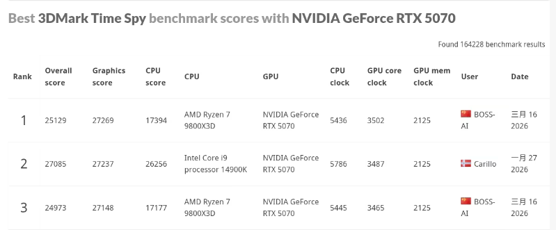 根据3DMark官网测试数据,技嘉RTX 5070 GAMING OC 12G魔鹰显卡在Time Spy项目中取得27269分的优异成绩。