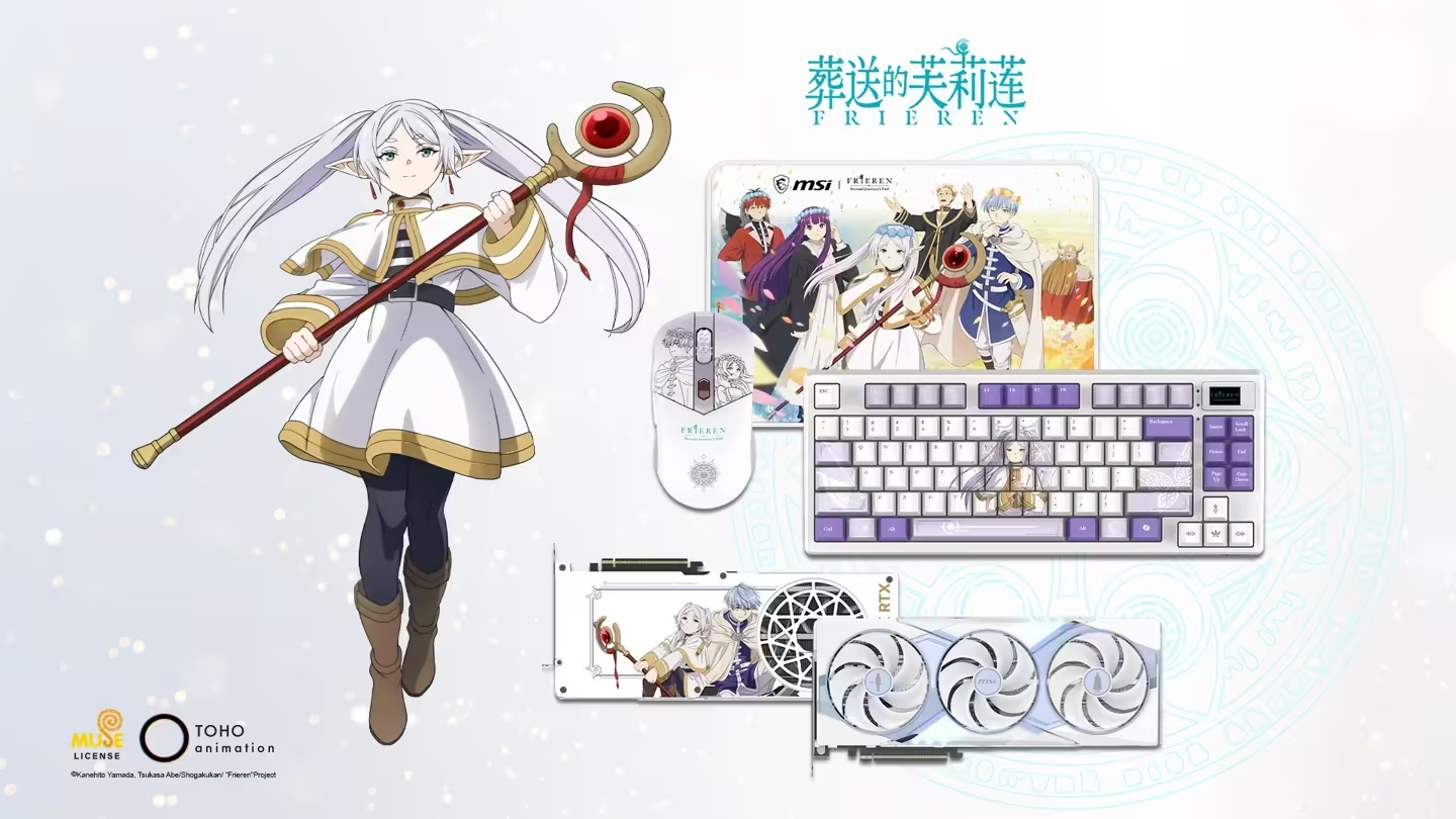 上一周,微星正式发售《葬送的芙莉莲》联名款硬件,其中主打单品GeForce RTX 5070 Ti 16G FRIEREN EDITION OC显卡定价8999元,同时推出的还有FORGE TKL WIRELESS无线键盘、VERSA WIRELESS无线鼠标、AGILITY GD20鼠标垫等联名外设,形成全套联名硬件体系。