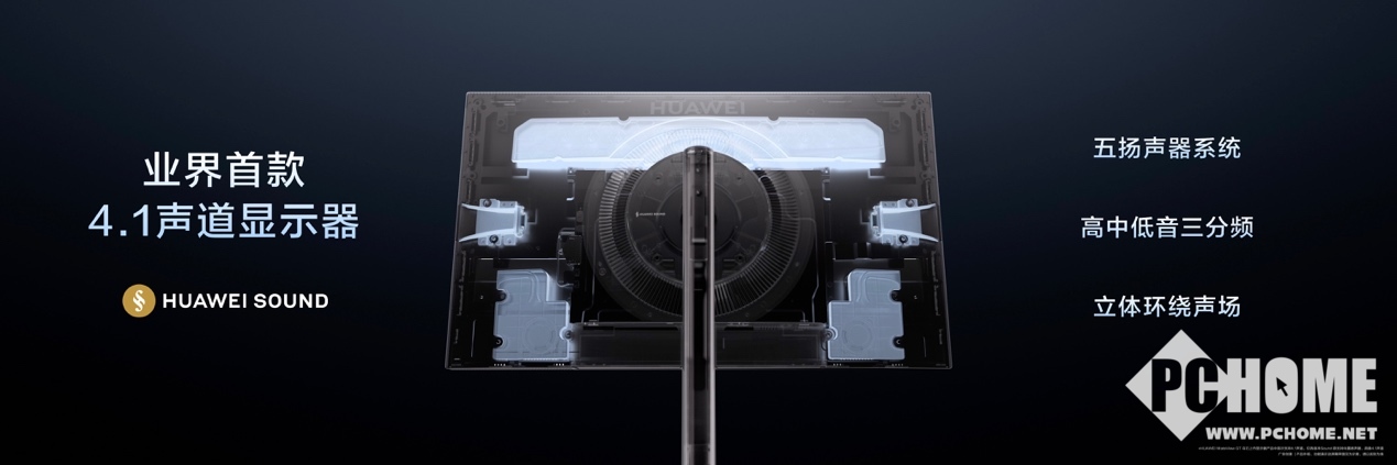 如果说优质的屏幕是显示器的基础,那出色的音效就是沉浸式体验的画龙点睛之处,全新一代华为MateView GT更是改变用户对显示器外放音效的认知,支持华为悦彰音效,是首款4.1声道+三分频的显示器,让桌面影音无需额外配音箱。