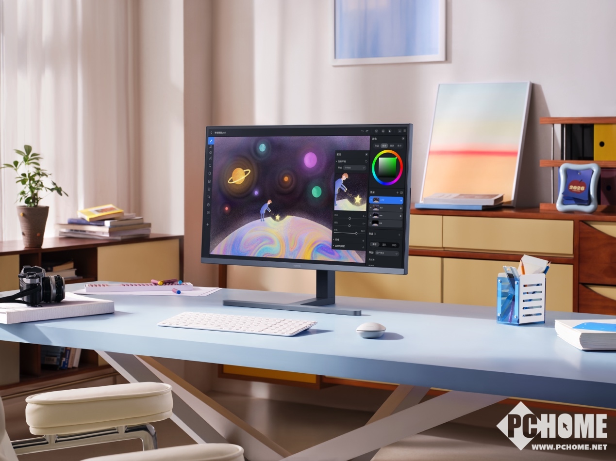 色彩表现上,新一代显示器达到了专业级水准,覆盖95% P3电影级色域与100% sRGB色域,能展现10.7亿生动色彩,色准△E<2的专业表现让画面色彩还原十分精准。同时,每台产品出厂都附带色彩校准报告,帮助用户更好地判断屏幕画面效果。首发的色温补偿功能,更能通过硬件温感传感器实时校准色温,让屏幕色彩在不同环境温度下始终保持一致,告别因周围环境变化导致的色彩偏差问题。而HDR 10与HDR Vivid格式的支持,更是让高清影音的画面层次更丰富,带来影院级的视觉享受。