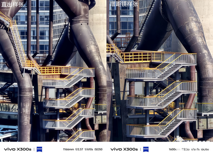 若是想要解锁更远的长焦拍摄能力,搭配「口红200」增距镜就能实现。这款配件小巧便携,机身长度不到10厘米,能随手放进衣兜,完美适配vivo X300s这款纤薄轻量的手机。手机搭配增距镜使用,大幅拓展了光学焦段覆盖,原本拍不到、拍不清的地方,都能有着清晰的细节呈现。样张里远处肉眼无法分辨的楼梯栏杆,就被手机镜头捕捉到了,可以说是大幅度的拓展了我们的视线范围。