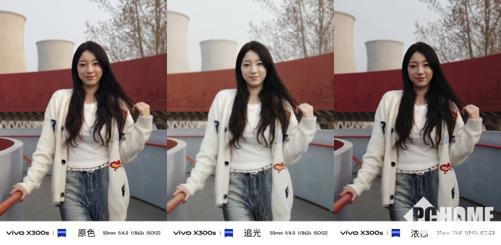 人像拍摄方面,三种风格各有特色:原色模式主打真实人像还原,肤色、肌理贴合本人原貌,五官轮廓与骨感刻画精准,完美还原人物本身特质;追光风格自带复古胶片质感,格调文艺高级;浓郁风格色彩饱和度更高,提亮人物气色,又不会出现网红脸的假感,美感自然。