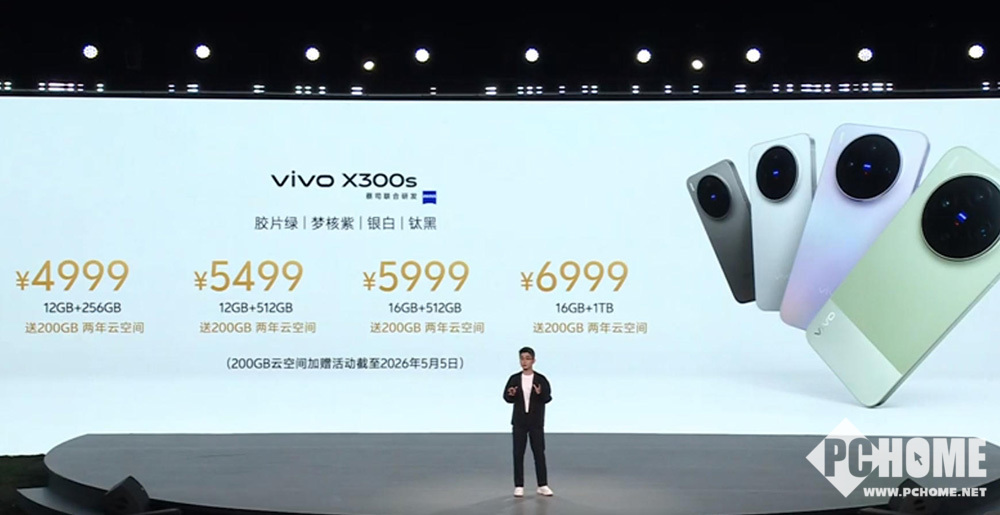 vivo X300s提供多个存储版本,12GB+256GB售价4999元,12GB+512GB售价5499元,16GB+512GB售价5999元,16GB+1TB售价6999元,摄影师套装版售价7999元。