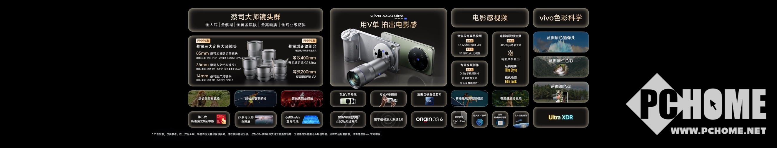 vivo X300 Ultra通过完整的、可扩展的、真正意义上的——蔡司大师镜头群,全黄金焦段、全大底、全蔡司、全高画质、全超级防抖,实现创作自由。14mm蔡司超广角镜头搭载蓝图×索尼LYTIA 818传感器,1/1.28英寸超大底,拍摄风光和人像实力不用多说;但比风光和人像更加依赖超广角的是视频,大底加上CIPA 6.0专业级防抖,跑着拍、转着拍,画面都很稳。35mm蔡司人文纪实镜头II搭载行业首发蓝图×索尼LYTIA 901传感器,1/1.12英寸超大底,像素升级至最高2亿直出,轻松实现35mm黄金焦段高画质;大底之外,光学镀膜也全面升级,采用1G+6P行业前沿的镀膜技术,反射率有效降低20%以上,加上CIPA 6.5专业级防抖,配合全新升级的人文模式,抬手就能稳出故事大片。作为第五代蔡司2亿灭霸长焦——85mm蔡司云台级长焦镜头,搭载全球首发蓝图×三星HP0传感器,1/1.4英寸超大底,在色彩、对焦、HDR和功耗控制上全面升级,自研的60fps高帧率系统通路、蓝图高刷追焦引擎、NICE算法引擎,每秒60次自动对焦是过去的两倍,焦点框如影随形,死死咬住目标;同时首发3°OIS光学防抖,实现专业相机才有的CIPA7.0专业级防抖,让用户在长焦运动抓拍场景下不仅追得很准,还能拍得更稳。