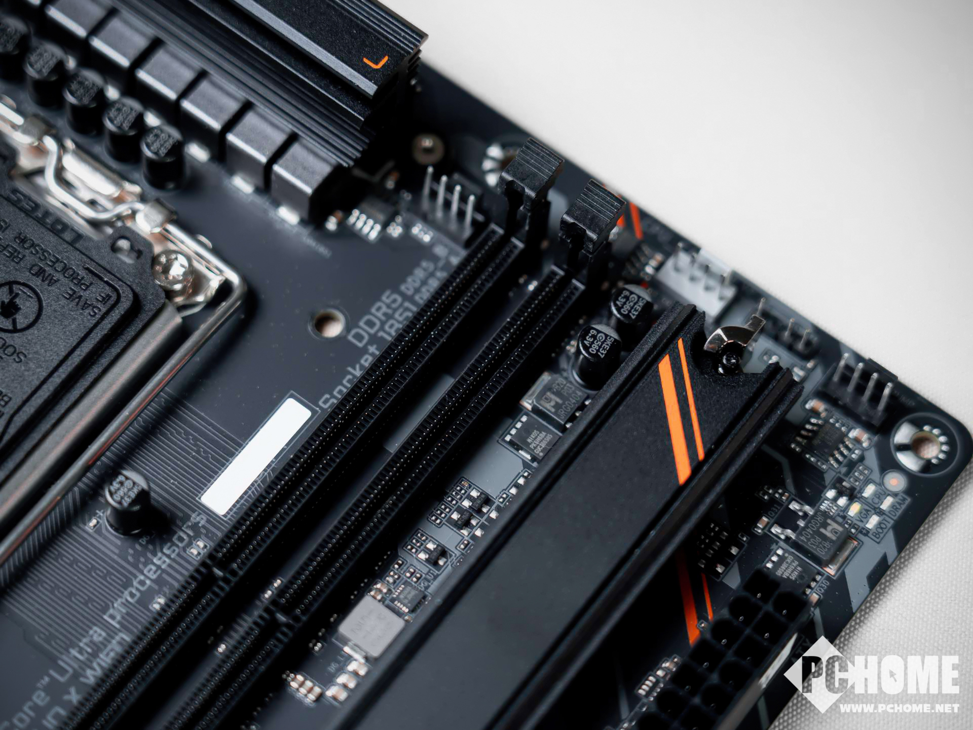 内存配置方面,虽然受限于主板尺寸,技嘉Z890M战鹰DUO X主板只配了两条双通道内存,但带来了D5 DUO X模式,同时支持CUDIMM/CQDIMM技术,因此两条就能做到最大256 GB的容量,支持XMP一键自动超频,并且最高频率达到了惊人的10266 MT/s!此外,还同样加入了技嘉主板独有的D5黑科技,可以进一步降低延迟、提高带宽,为内存性能带来鸡血加成。