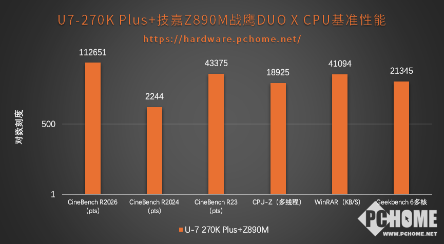 此次测试的平台除了技嘉Z890M战鹰DUO X主板搭配英特尔酷睿Ultra 7 270K Plus处理器之外,还使用了技嘉AORUS GeForce RTX 5080 MASTER 16G显卡等部件,详细配置见表格。(*由于平台优化和软件版本环境不尽相同,下文测试成绩仅代表当前硬件配置在PChome评测室环境下所得)