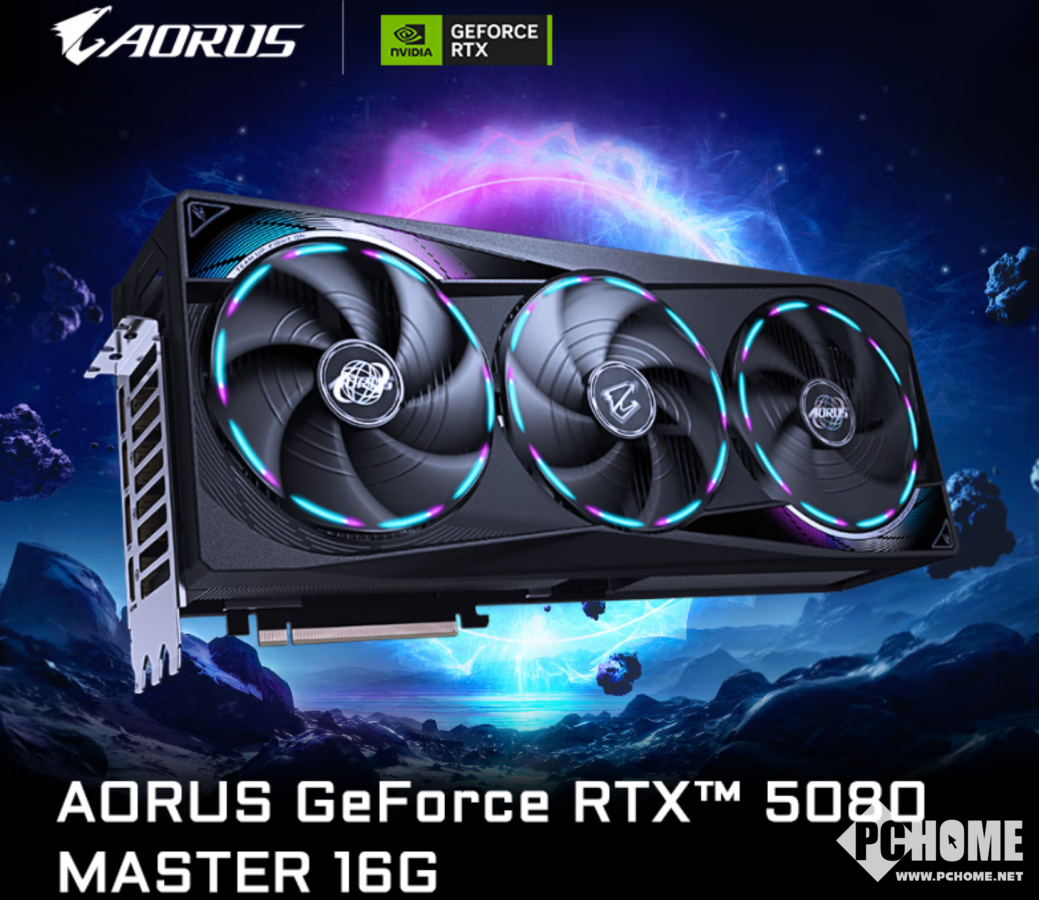显卡方面,此次我们使用的是技嘉GeForce RTX 5080 MASTER 16G显卡,黑色卡体+炫彩光轮风扇的设计与主板也是十分搭配。作为NVIDIA GeForce RTX 50系列中的4K顶流显卡,RTX 5080超级雕采用NVIDIA BlackWell架构,采用GB203核心,流处理单元数量高达10752个,配有256bit、16GB容量的GDDR7高速显存。原厂超频设计,相比公版最高核心频率由2617 MHz提高到了2805 MHz,性能释放更强。