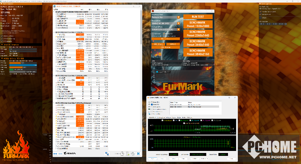 酷睿Ultra 7 270K Plus再加上RTX 5080显卡,对于主板供电还是有着较高的要求。在AIDA64+FurMark 2的4K分辨率双烤机测试中,技嘉RTX 5080超级雕平均输出功耗稳定在353瓦(Board Power Draw),同时Ultra 7 270K Plus处理器的平均输出功耗也没有下降,依然保持在249瓦,总输出功耗超过600瓦,平台在高负载下的稳定性得到了充分验证。