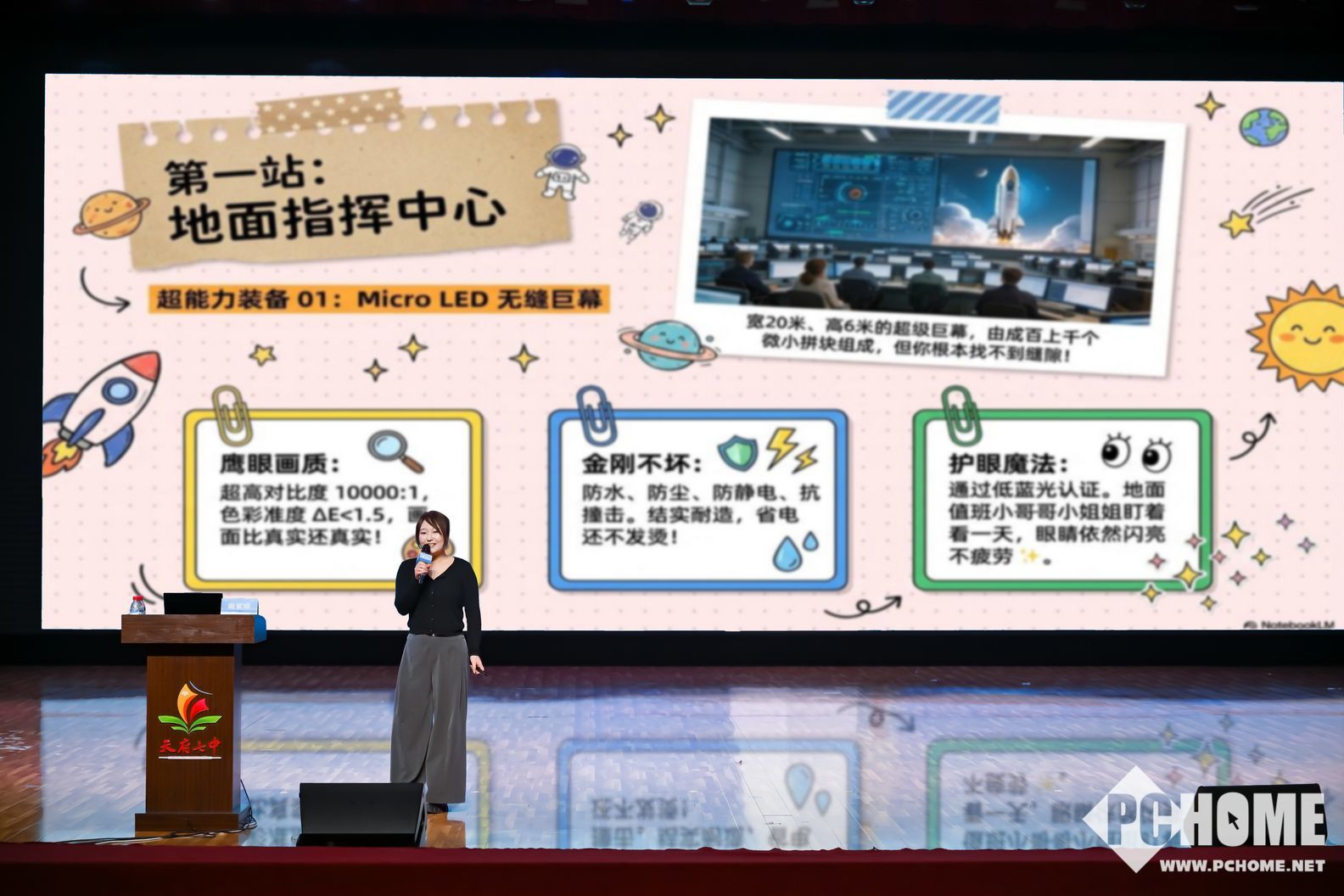 课堂上,讲师娓娓道来,将追觅的视听技术与航空航天领域的尖端应用巧妙结合。他揭秘了追觅如何为破解宇宙极境打造“视听超感装备”:将降噪、AI精准拾音等声学技术运用于航天耳机,以过滤火箭发射时高达120分贝的轰鸣等环境杂音;利用误差小于1%的声场雷达定位与杜比全景声(Dolby Atmos)3D立体声技术,在复杂太空环境中实现精准的声音捕捉与还原;更通过黑晶臻彩屏与AI智能调光技术,结合漫反射防眩光与65000级精密亮度自动调节,确保在太空极端光影条件下屏幕依然清晰。这些源自航天需求的技术,正悄然改变着我们地球上每一块屏幕、每一只耳机的体验。