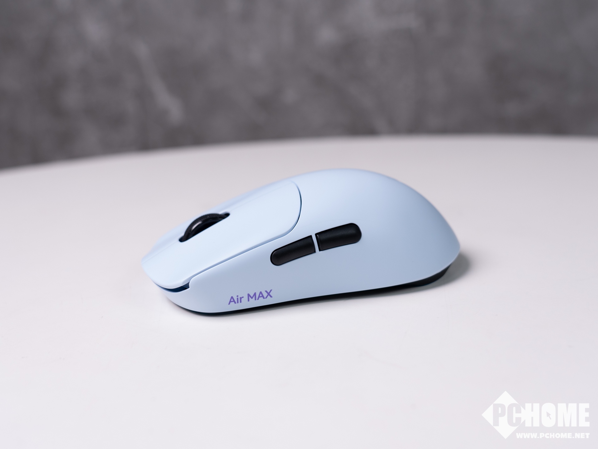 VT3s Air MAX则是右手人体工学款,延续39g轻量化设计,但在模具高度上有了非常大的差距,体积稍大一些,背高42mm、前端高32mm,鼠标左侧高,右侧低,不经常使用人体工学鼠标的用户第一次上手很难适应这极大的变化。但这并不代表这款鼠标不适合用来打游戏。在人体工学模具的基础上,VT3s Air MAX还为电竞属性增加了一些细节上的优化。