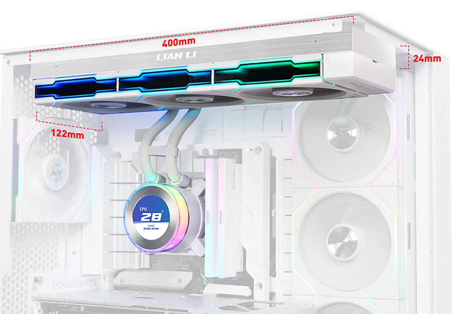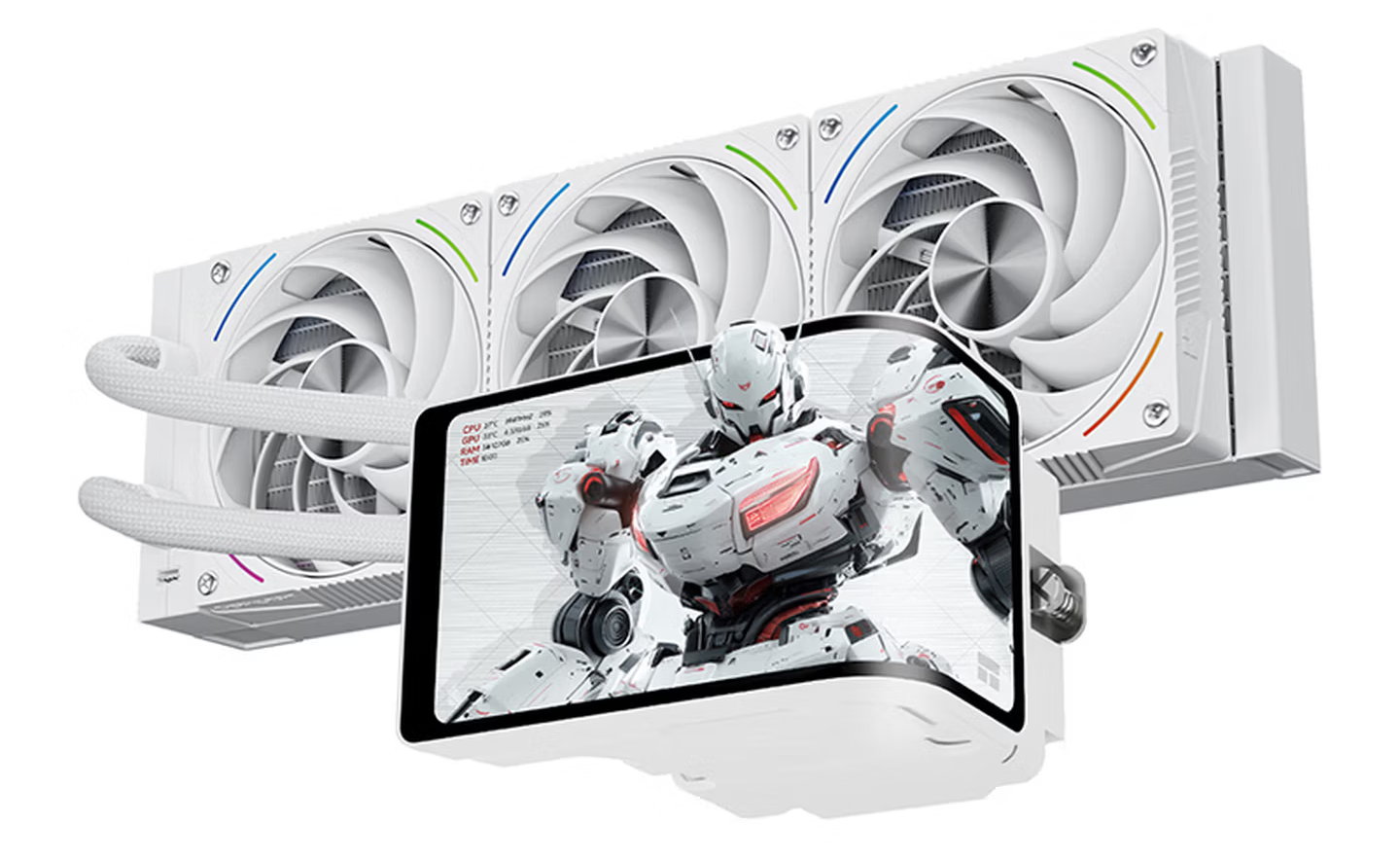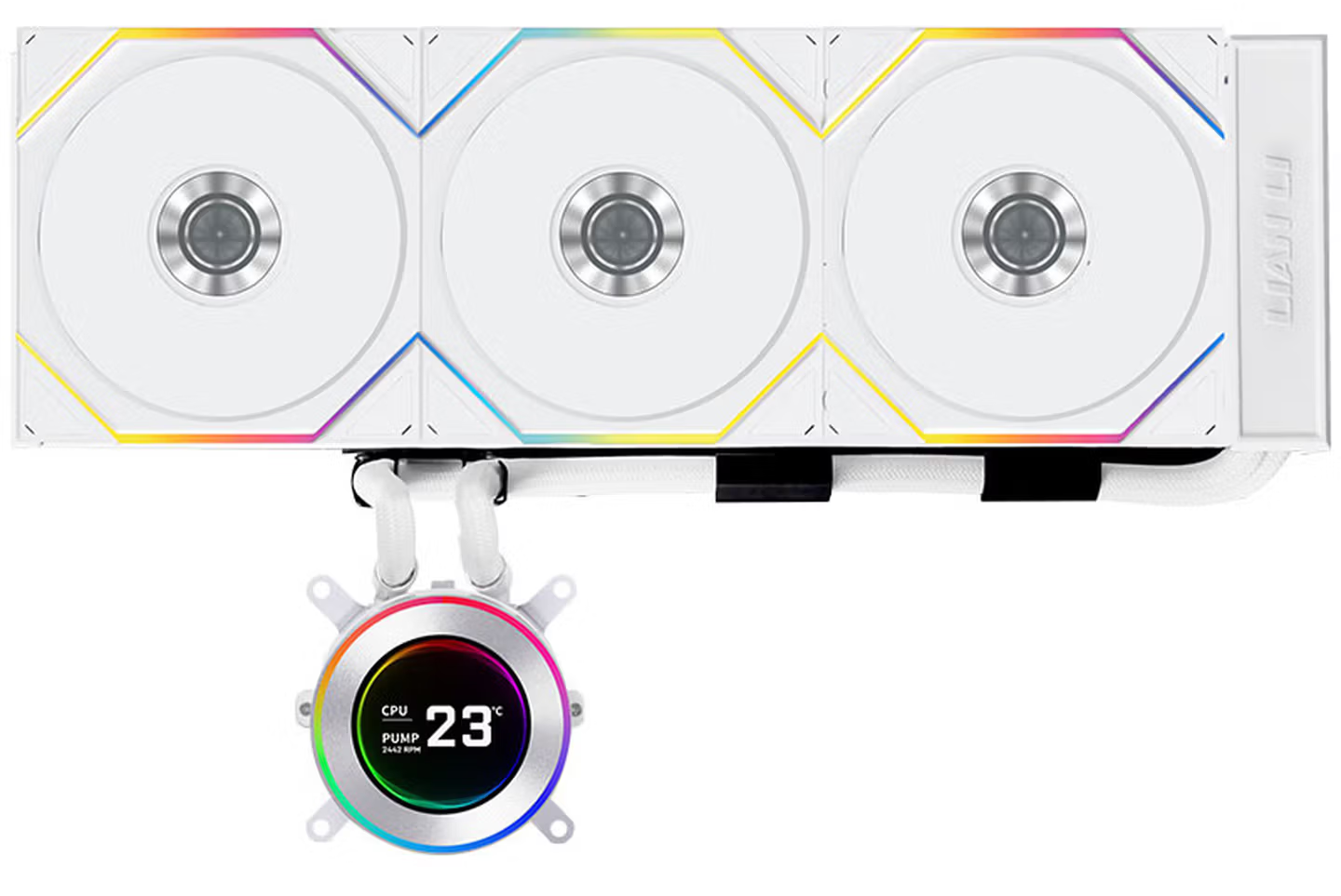 如果说ROG卖的是“信仰”,那么联力这款卖的就是硬核工业设计。隐流2代360水冷分为黑白两色,其中的白色款非常适合装一套海景房。这款水冷的核心竞争力,集中在积木风扇设计、新一代Asetek水泵与隐藏式走线结构上,可以说是在视觉效果与散热性能之间做到了一定的平衡。