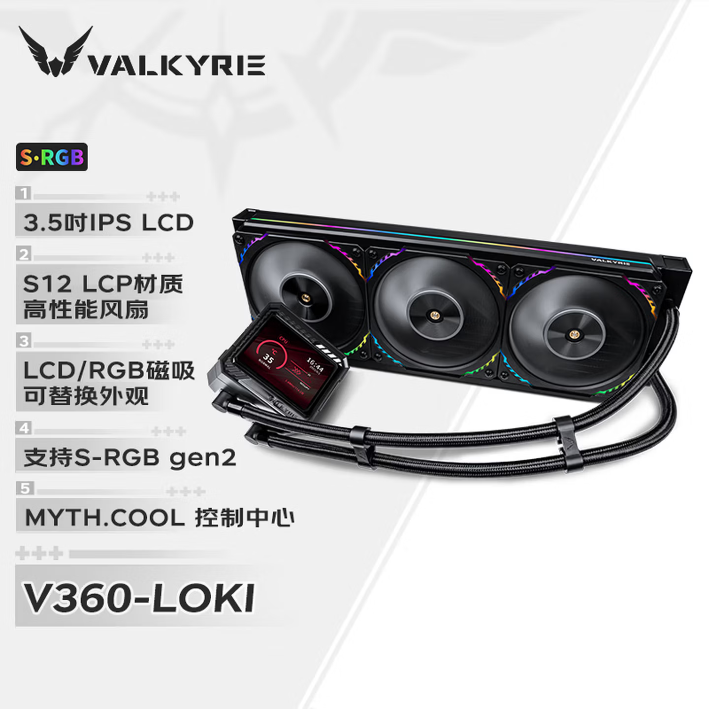 瓦尔基里近年异军突起的硬件厂商,其中水冷产品更是凭借出色的散热性能与优秀的售后,迅速在DIY玩家中获得不小的热度,V360 LOKI更是其中偏向硬核性能的代表,主打高散热效率、静音表现与超长质保,在外观方面可能相对不那么突出,但是是看重实际使用体验的实用派首选。