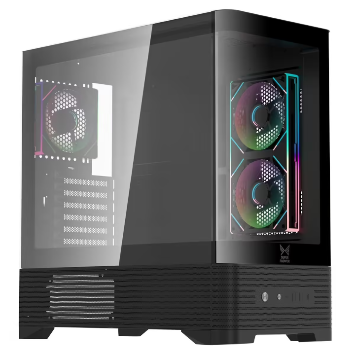 PChome4月8日消息,振华全新推出M801全景曲面玻璃中塔机箱。机身容积仅53.7L,但可兼容E‑ATX主板与最长425mm显卡,同时预装多颗风扇以强化散热性能,台湾地区售价约合人民币428元。