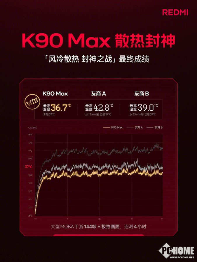 PChome 4月9日消息,小米在直播活动中,进行了三款手机的散热表现测试,在直播结束过后,雷军也在社交平台宣布,REDMI K90 Max勇夺桂冠。