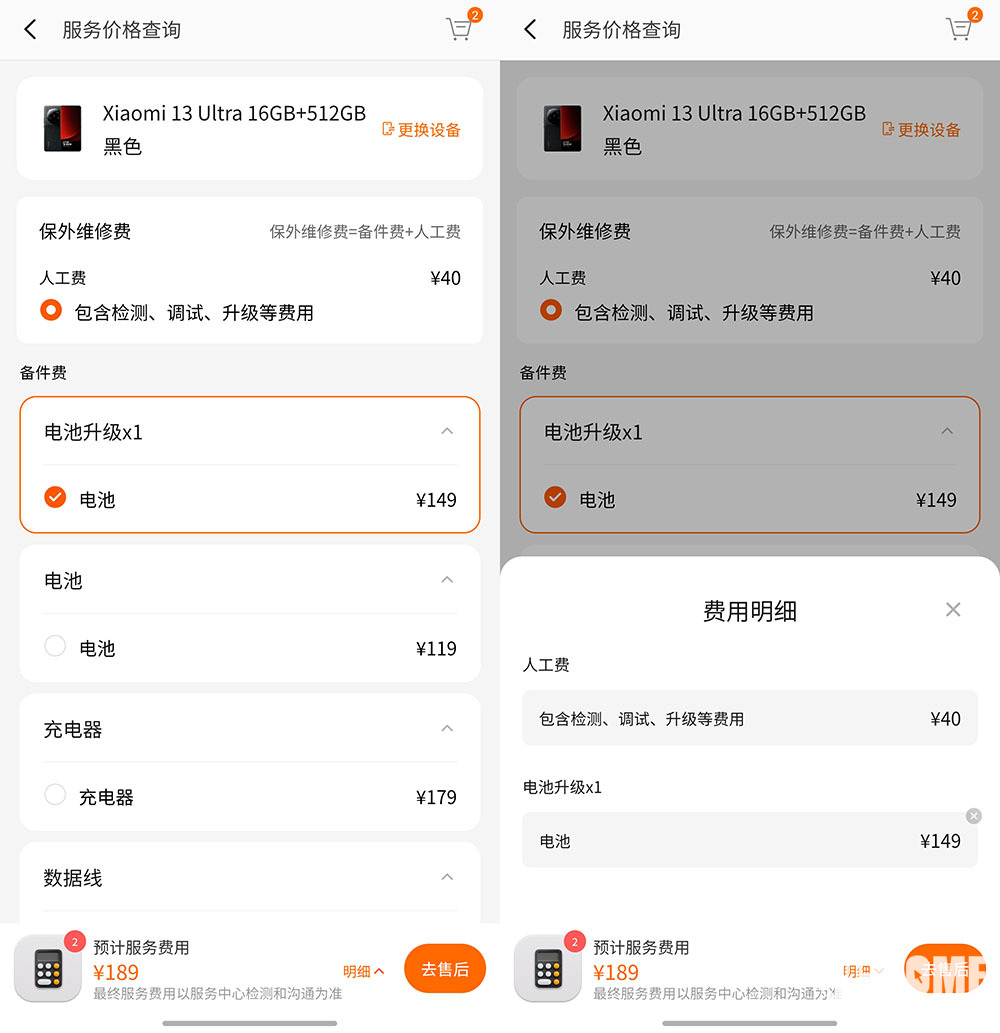 值得注意的是,电池升级服务的价格高于普通换电池服务。小米官方标价为149元,另需额外支付40元人工费,相比单纯更换电池,整体费用高出30元。不过从实际使用需求来看,更大的电池容量对老机型更为实用,30元的差价具备较高的性价比,物有所值。
