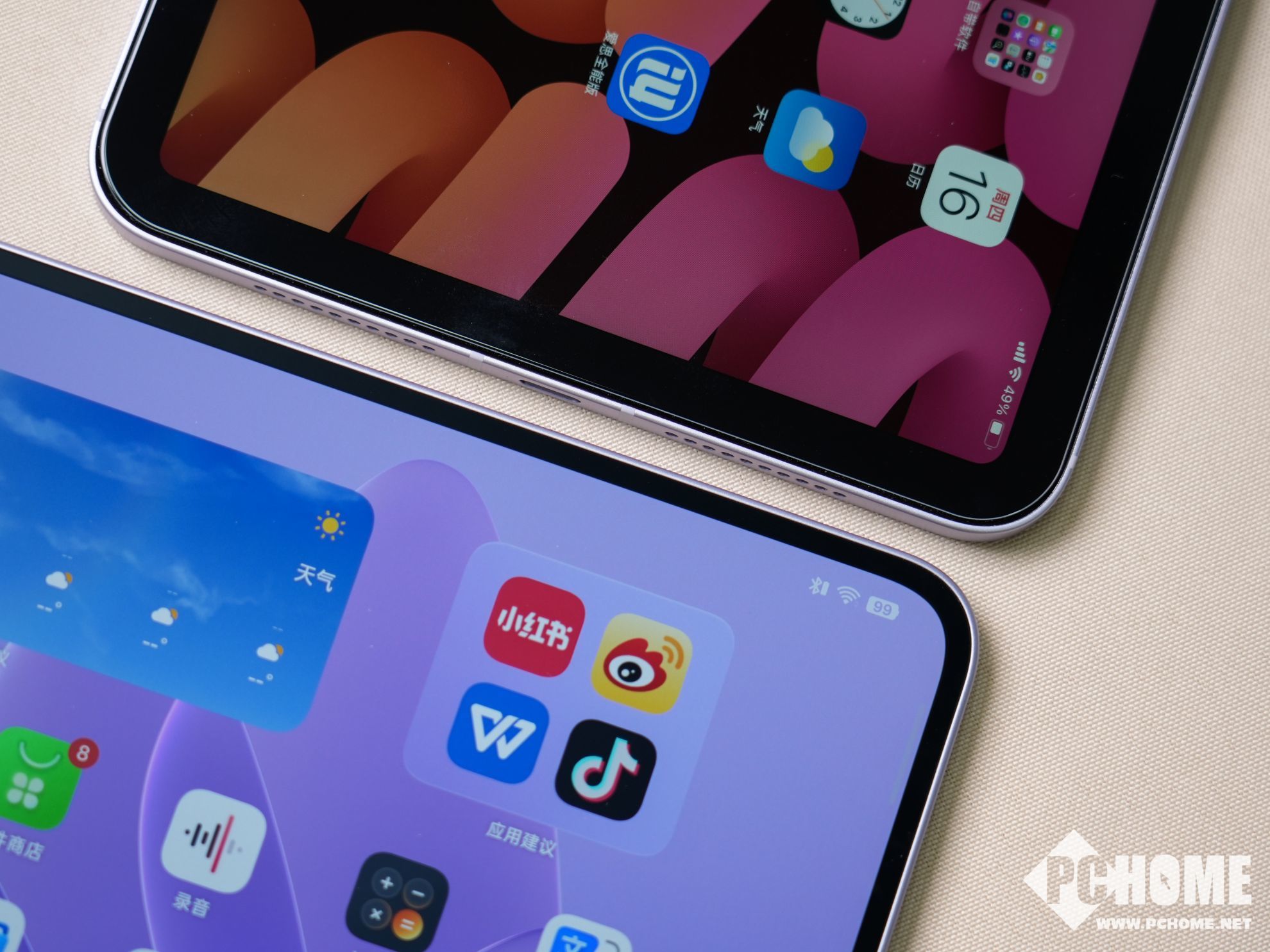 除了机身轻盈易携带之外,OPPO Pad Mini能称之为“小板王”,还因为它的超窄边框,和手边的这台iPad mini对比,肉眼就能看出OPPO Pad Mini的边框控制的更加出色。OPPO Pad Mini的黑边仅有2.99mm,约为92.5%的屏占比在使用过程中视野更加沉浸,不会被多余的黑边分散注意力。