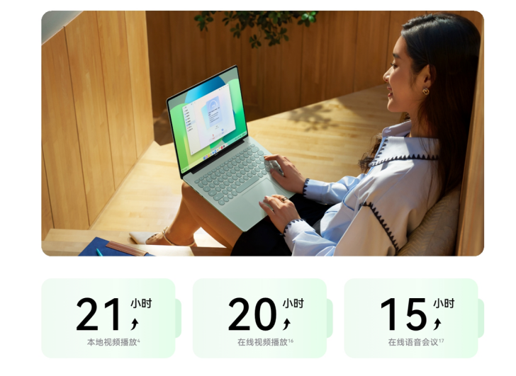 针对大多数用户更加关心的续航问题,华为MateBook 14 鸿蒙版配备70Wh大电池,本地1080P视频播放最长可达21小时,爱奇艺视频播放20小时,腾讯语音会议可持续15小时,还支持66W关机反向快充,可给手机、平板等设备应急补电,变身移动电源。