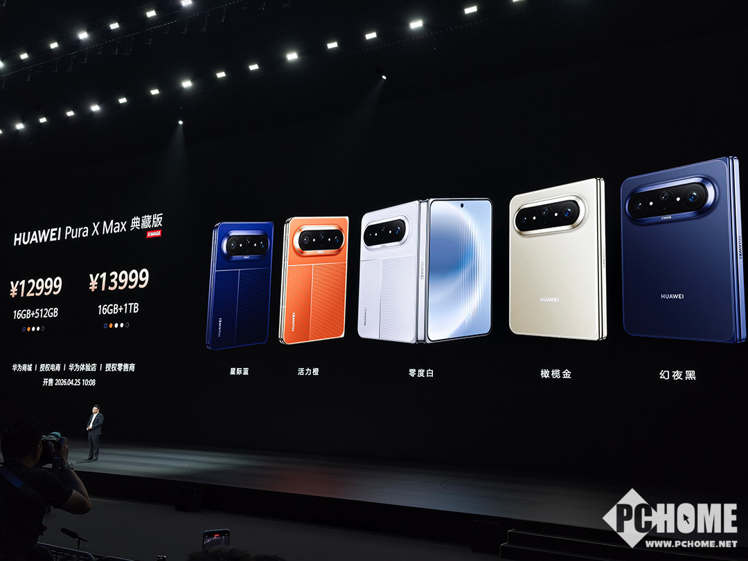 PChome 4月20日消息,华为折叠屏家族再添新成员——华为Pura X Max正式亮相,该机售价10999元起,是华为推出的首款“大阔折”手机。